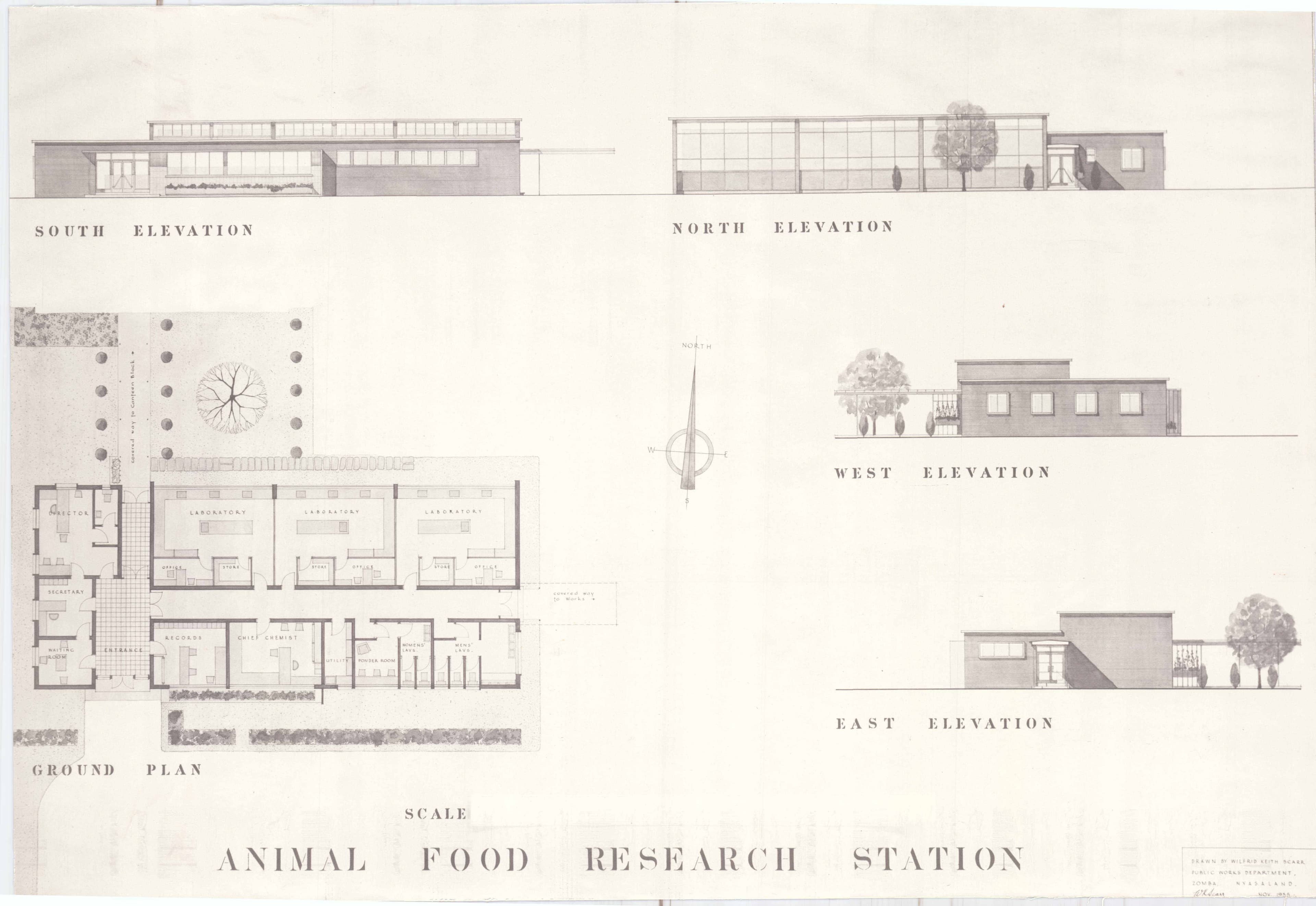Wilfred Scarr, design for an 'Animal Food Research Station', Public Works Department, Zomba, Nyasaland Protectorate, November, 1955. Courtesy of Scarr family