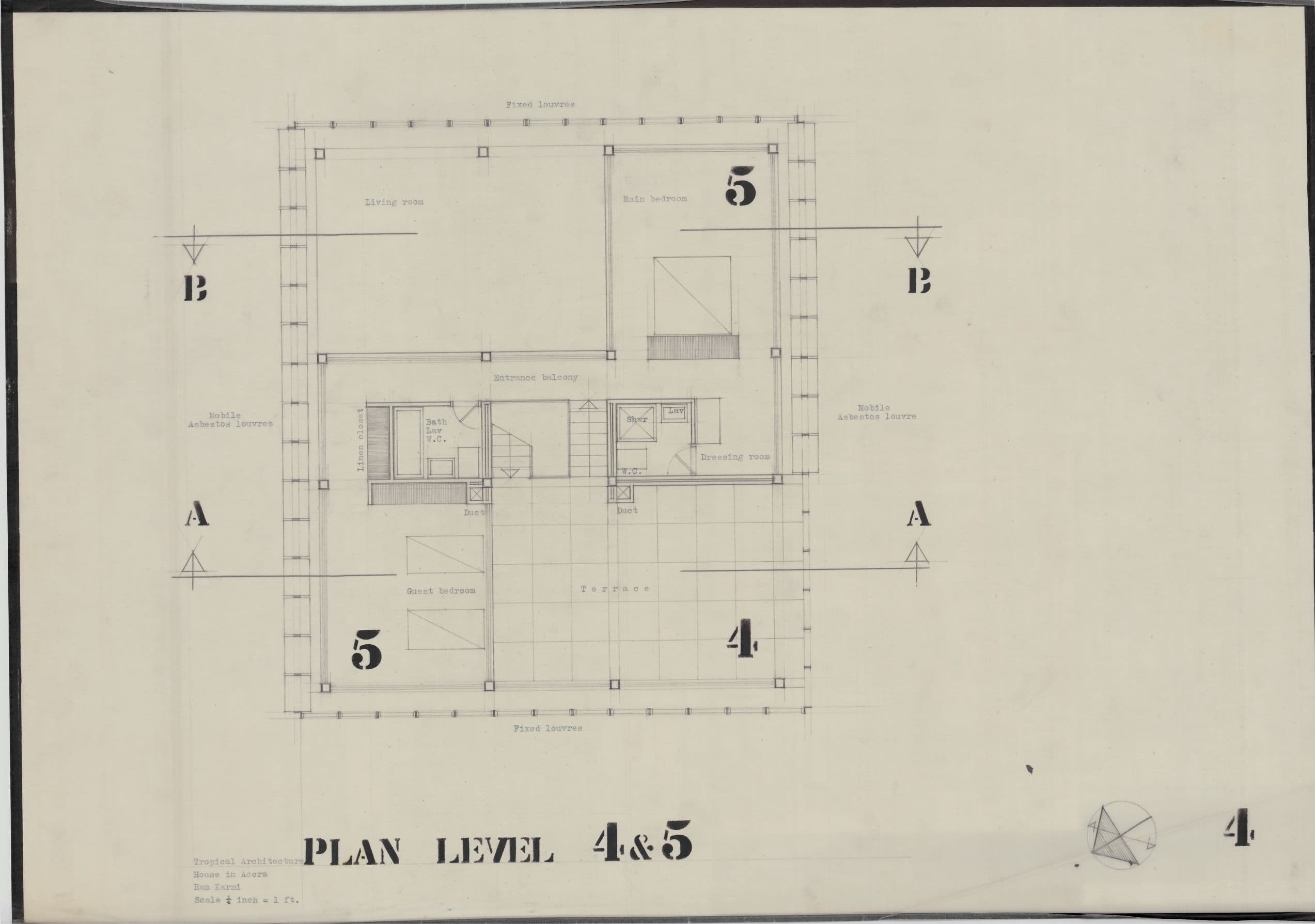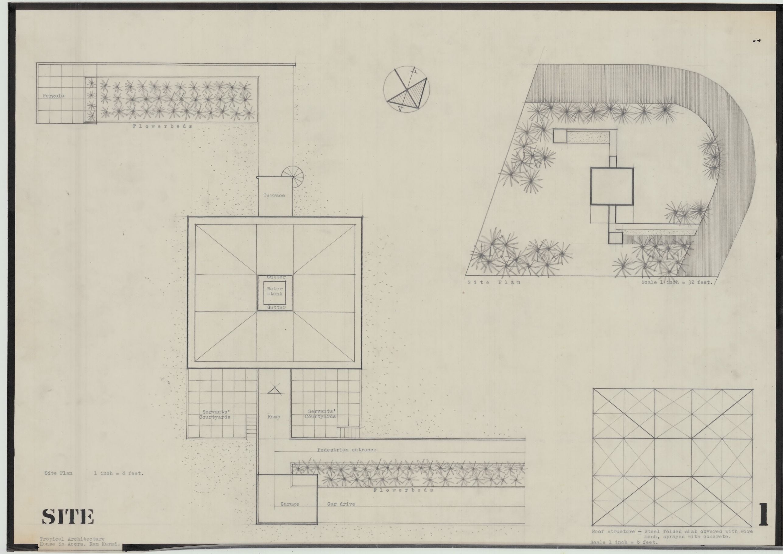 Ram Karmi, 'House in Accra', AA Department of Tropical Architecture, 1954-55. Site plan.. AA Archives