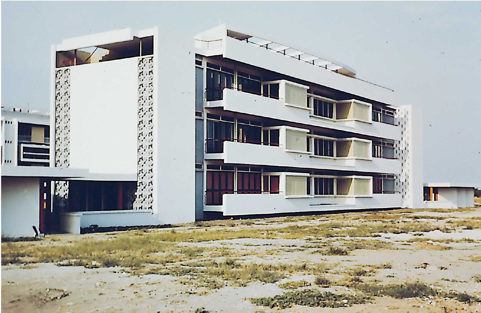Michael Hirst was born in Watford, UK, in 1933 and studied at the Architectural Association from September 1950, graduating with Diploma Honours in the summer of 1955. As part of his final year’s studies, in 1954-55, Hirst joined the first cohort of the newly formed AA Department of Tropical Architecture. Immediately following graduation, Hirst and three other DTA students (Kenneth Frampton, Dudley Duck and Graham Herbert) were interviewed by Ivor Cummings, a senior officer in the Colonial Office, and offered jobs in Ghana, working on the design and construction of Tema New Town, Ghana. He was employed initially by Guy Morgan and Partners and subsequently Architects’ Co-Partnership, one of his tasks being the design of a housing prototype. Hirst returned from Ghana in the Spring of 1958 and by 1960 is recorded working on architectural projects for the UK War Office in Malta. From 1963-1969 Hirst operated his own practice, conducting work in Tripoli and Bengazhi before returning once more to the UK where he established Michael Hirst Consultants.