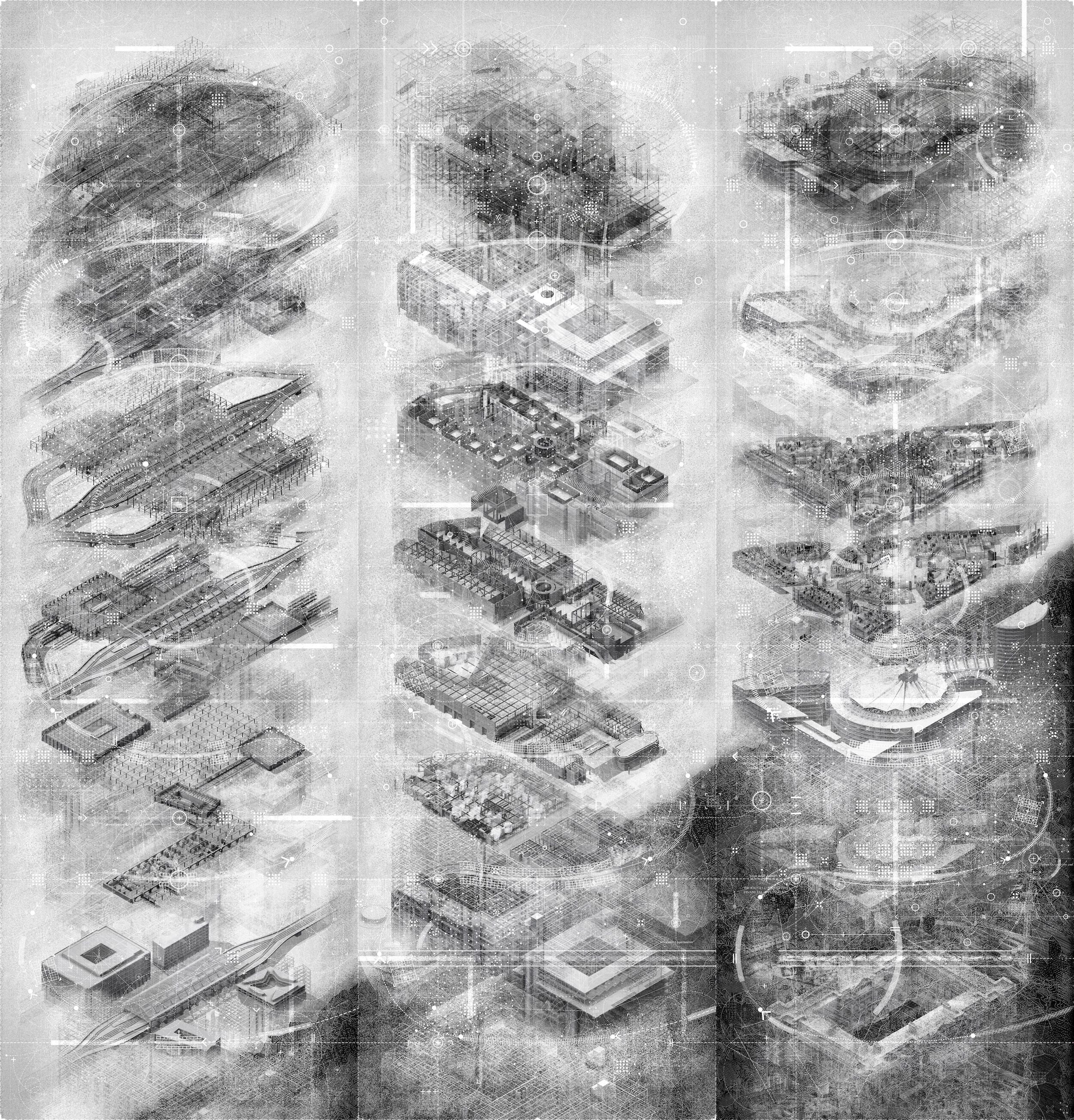 His winning triptych Architecture in Translation depicts and explores the competing ideologies through which architecture is conceived and materialised. It interrogates the tension between control and emergence, between the imposed object and the emergent system. Through translations between space, form and diagram, the architecture of the city evolves in response to both external forces and its internal logics. Architecture in Translation resists the imperative for novelty or iconography. The architecture it proposes may be neither new nor novel – perhaps even 'late'. Yet its strength lies in its architectural silence: a quiet dialogue with its past and with itself, attuned to disciplinary specificity and its own evolution.