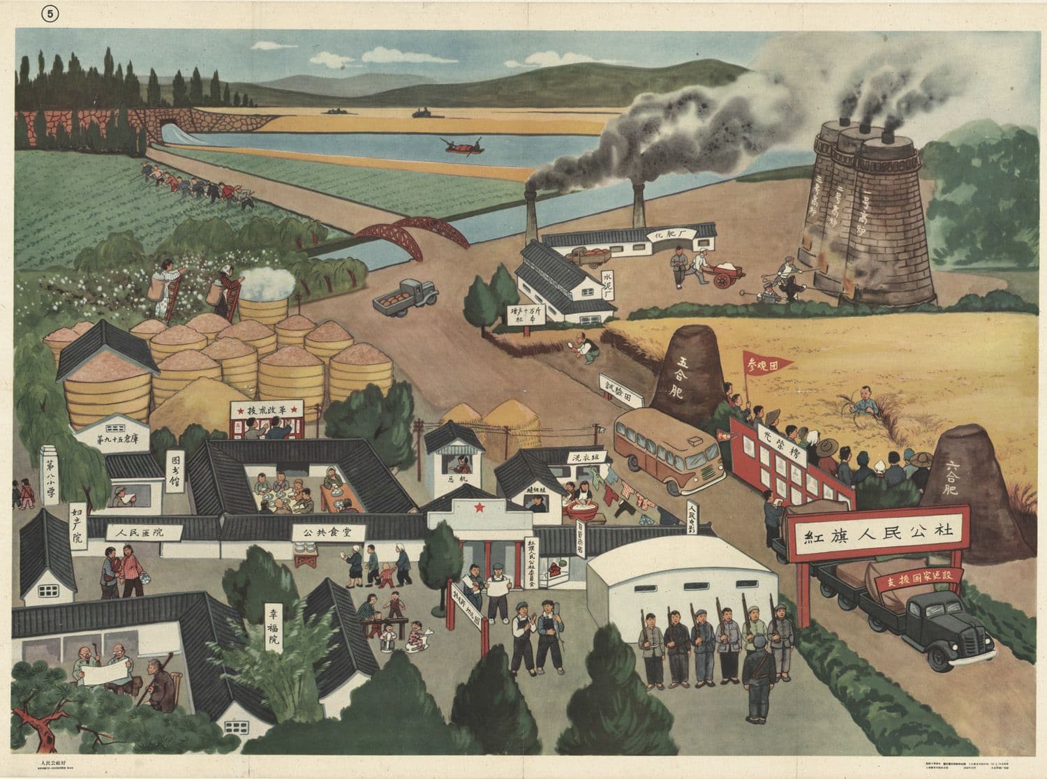 Image: People's Communes are Good, poster of the Hongqi People’s Commune, 1958. Designer: Guangting Rui. Publisher: Shanghai Educational Publishing House