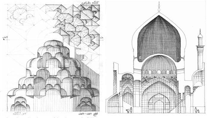 Mumatz commented that 'The art of Likhai, or delineation, provides the ground, the organising schema, for practically all of the traditional visual/tangible arts — from Naqqashi (fresco painting) to Thoba (stucco tracery), Aina Kari (mirror work), Qaleen Bafi (carpet weaving), Kashi Kari (glazed-tile work), Munabat Kari (wood carving) and, of course, architecture.
