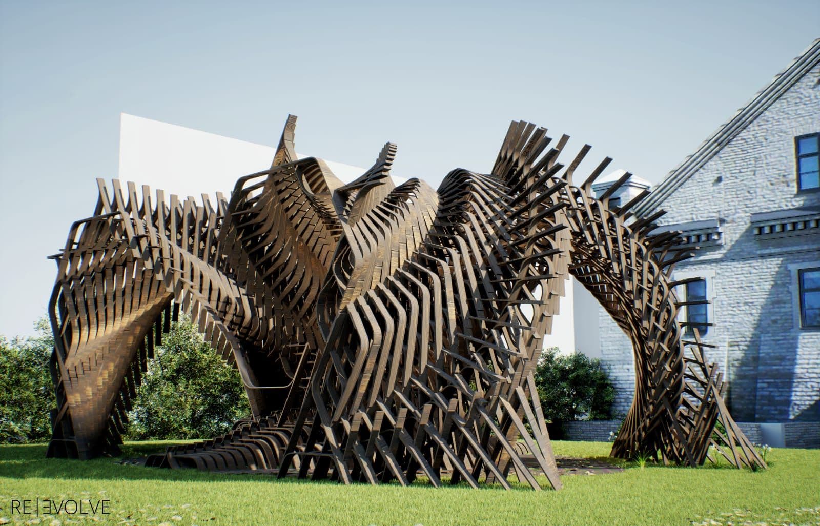 The trio collaborated with Nicolo Bencini, of BuroHappold Engineering, to design RE|EVOLVE, a proposal that intends to explore new design and construction technologies that repurpose materials which have completed their first life cycle towards innovative structural formations. The aspiration for RE|EVOLVE is driven by the awareness of production in a world with limited resources that cannot infinitely sustain current rates of growth.