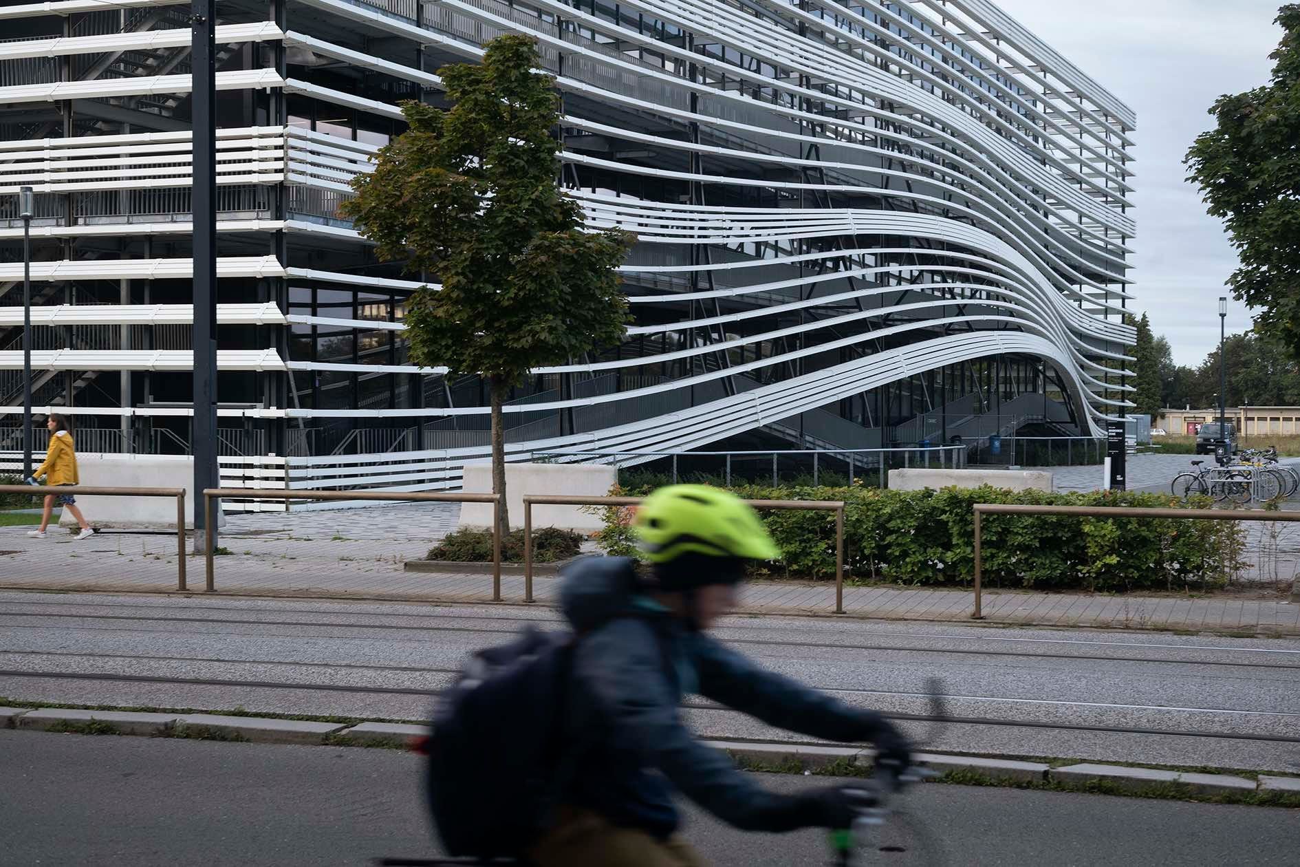 Vuga commented that: ‘The sports hall takes the role of northern gates to the campus and connects the campus to the city with its direct relation to the existing sports hall and an added volume with its concave-convex reflective façade, opening up on the city side. The transparent ground floor enables the projection of the activities happening inside of the building to the city context.’