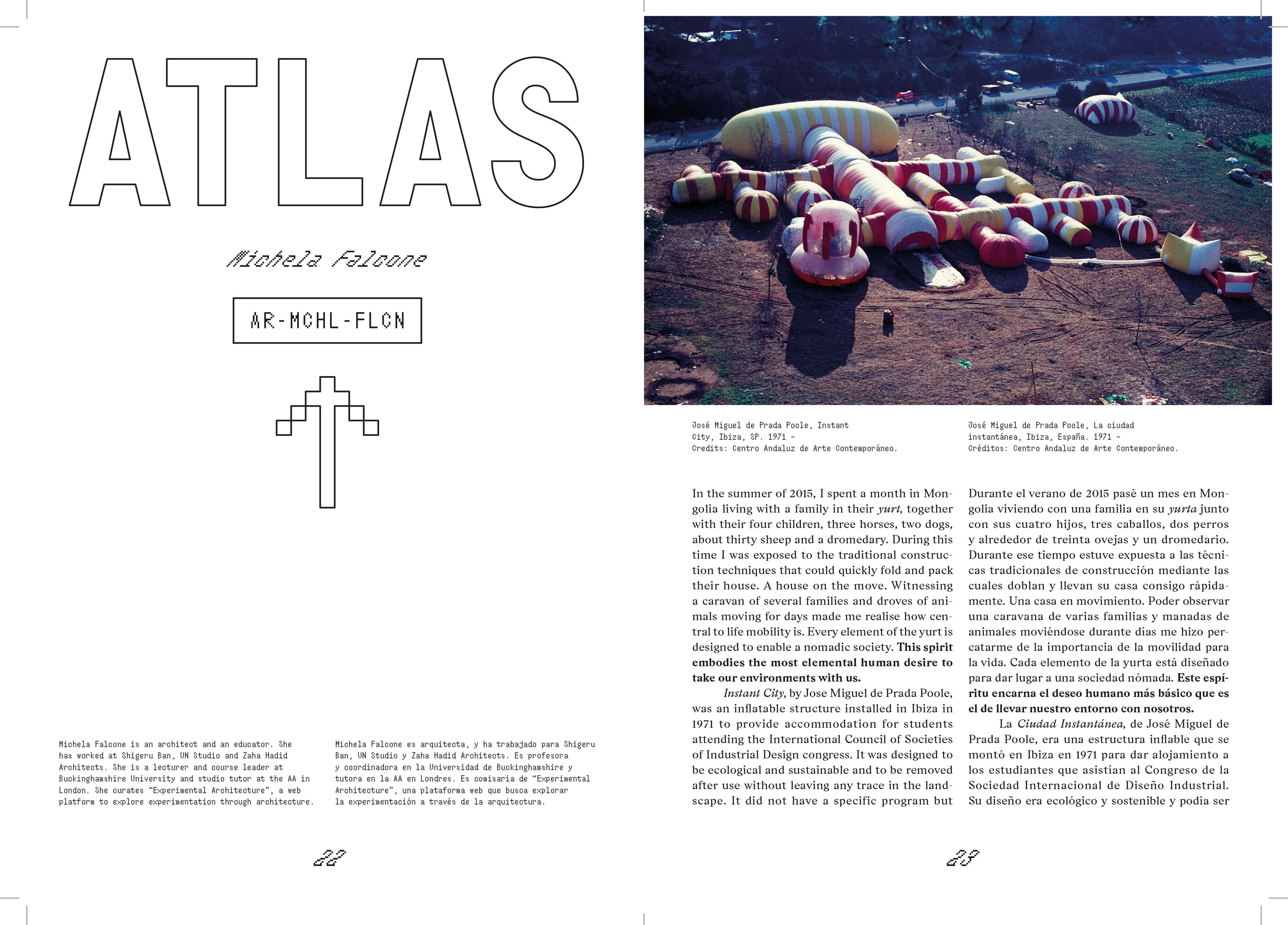 Falcone’s article, Atlas, recently featured in the magazine appearing under the volume Logistics and is an observation of experimental ways of designing and building moveable or temporary architecture.