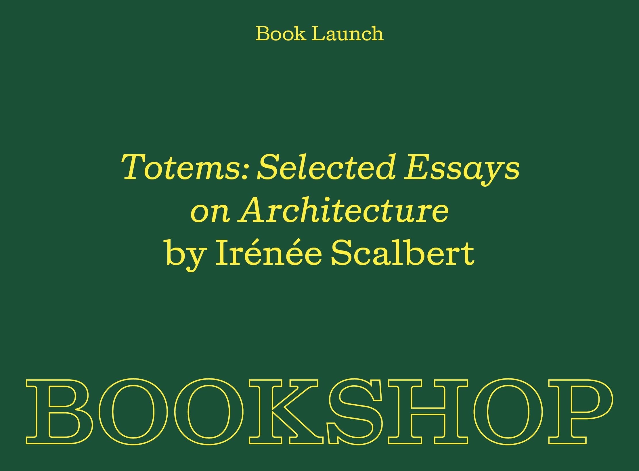 We are delighted to launch Totems: Selected Essays on Architecture. Irénée Scalbert will briefly introduce the book, with questions moderated by Matthew Blunderfield. The evening will include drinks and a visual presentation.