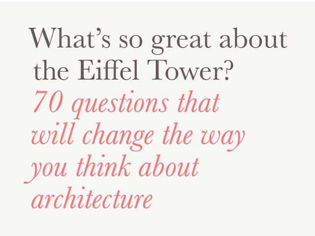 What’s So Great About the Eiffel Tower? 70 Questions that will change the way you think about architecture.
